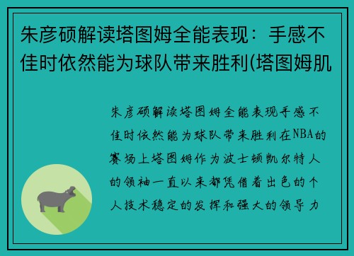 朱彦硕,一位曾在CBA打球的前球员,也是体育评论员,经常对NBA球员的表现进行深入分析和解读。他对于塔图姆的全能表现有着独到的见解。本文将结合朱彦硕的解读,从多个角度探讨塔图姆如何在困境中依然能为球队做出贡献,如何调整自己的比赛方式以适应不利的局面,最终帮助凯尔特人获得胜利。